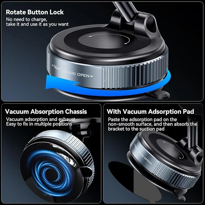 Triple-Lock System: Vacuum suction + magnetic grip + stable base